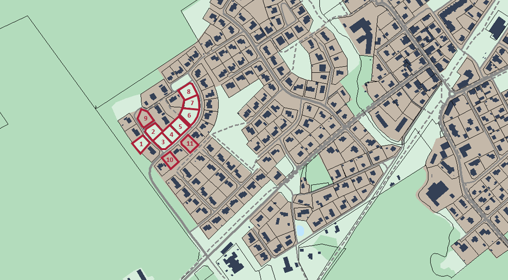 Det finns idag 11 avstyckade lediga tomter i Håkantorp.